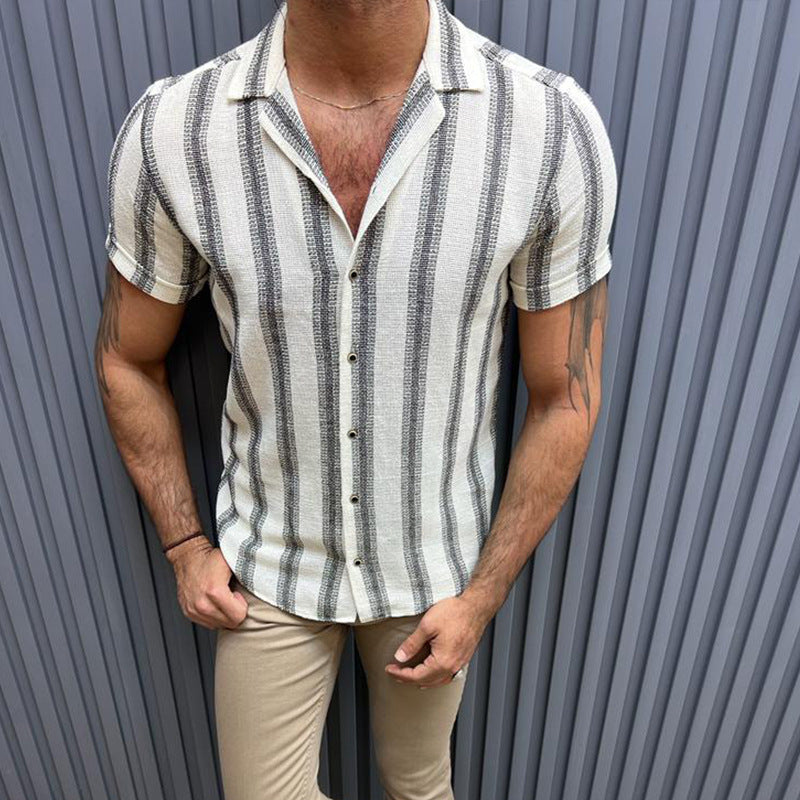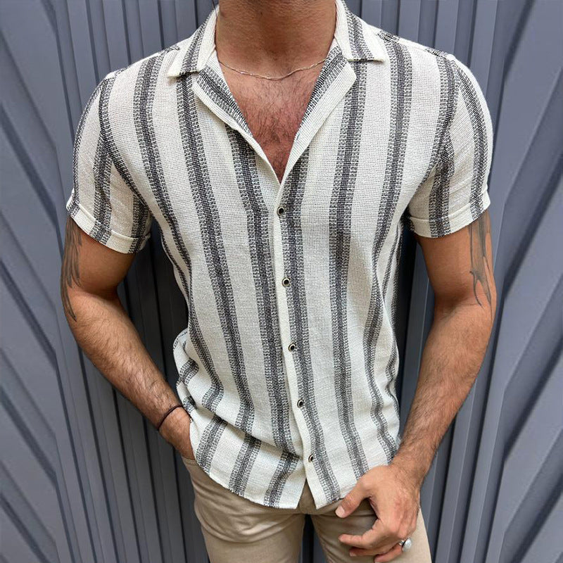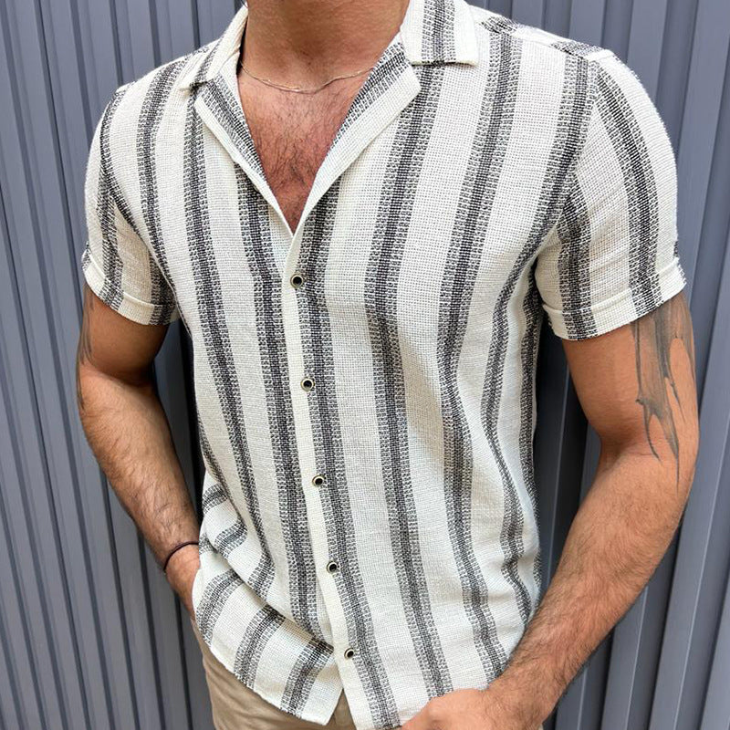 Fashion Casual Men's Stand Collar Casual Striped Shirt
