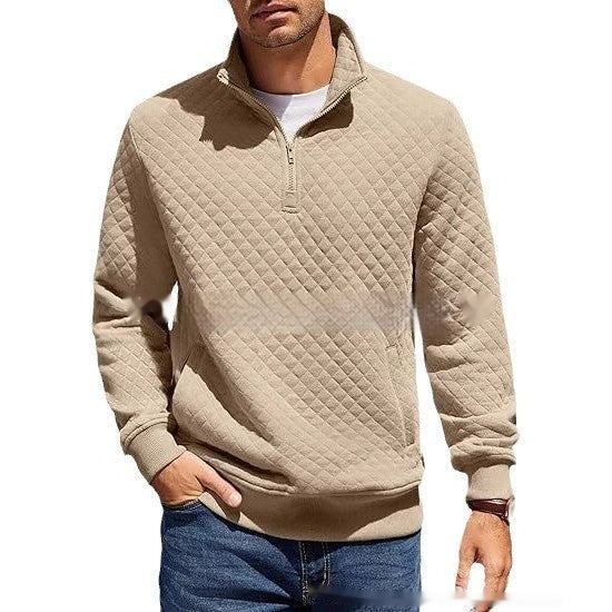 Long Sleeve Knitted Zip Pullover Plaid Sweatshirt