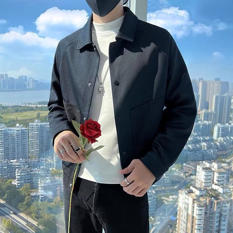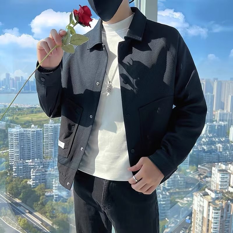 Twill Green Coat Lapel Pu Handsome Jacket